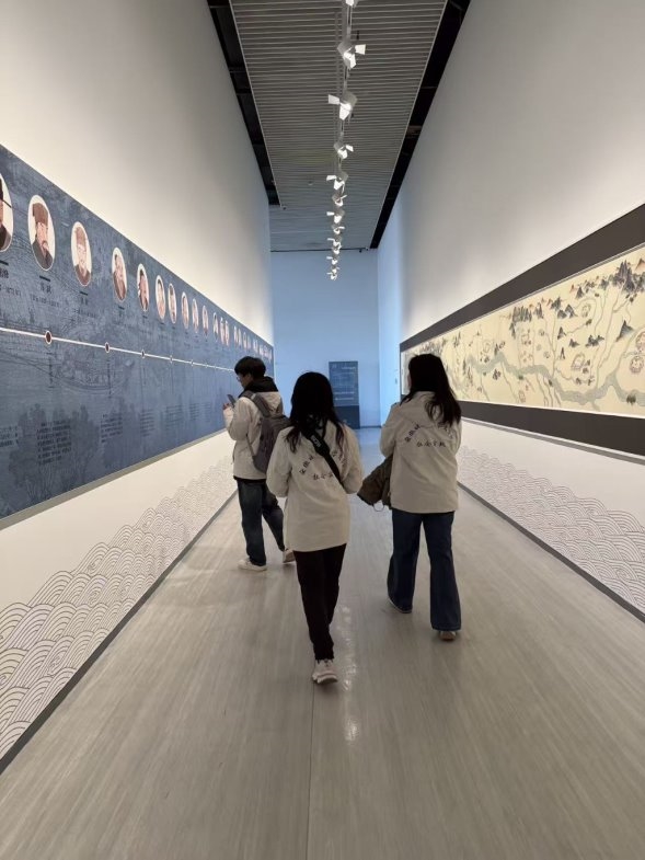 参观过程中,团队成员还特别关注了垓下遗址的考古发掘历程展区。通过珍贵的考古照片、发掘工具与考古日记,成员们了解到考古工作者们栉风沐雨、潜心发掘的艰辛,正是他们的不懈努力,才让沉睡千年的文明遗址重见天日,为研究淮河流域历史文化提供了宝贵的实物资料。这份坚守与担当,深深感染了每一位实践团队成员。