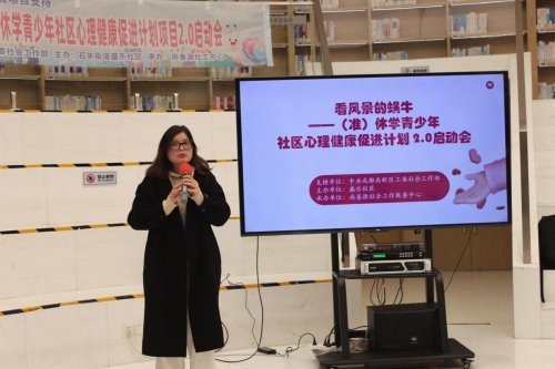 盛乐社区党委狄玉萍书记强调了社区在青少年心理健康服务中的责任,介绍了社区对本项目的具体支持措施,表示将持续搭建协作平台、整合多方资源,呼吁各界携手营造关爱、互助的社区氛围,共同为青少年健康成长助力。