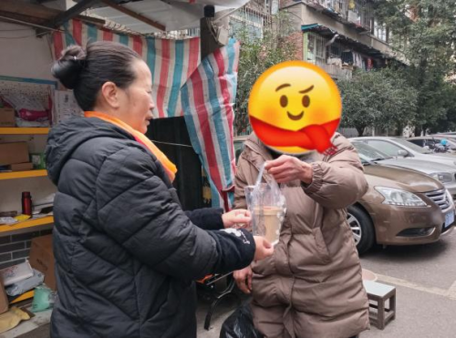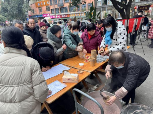 在面街广场另一边,志愿者们有序组织居民分批领取精心熬制的腊八粥。居民们手捧热粥,笑语盈盈,彼此问候,现场洋溢着浓浓的邻里温情。与此同时,“荣耀之光”志愿服务队的队员们将打包好的腊八粥送至社区高龄、独居老人家中,让不便出门的居民也能感受到节日的温暖与社区的牵挂。