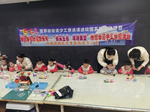 2026年1月23日下午15点,成都高新区芳草街街道少工委精心策划的非遗进校园系列活动再添精彩篇章,“指尖生花·玩转面塑”传统非遗手工体验活动在芳草街街道妈咪家幼儿园温情启幕,园内共计109名孩子热情参与,在指尖揉捏间邂逅传统面塑技艺,感受非遗文化的别样魅力。